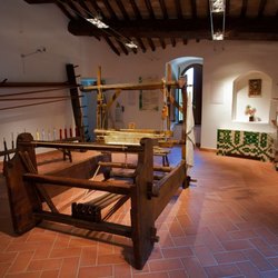 Il secondo piano è dedicato ai lavori preparatori alla tessitura, all’orditura, alla tessitura, alla collezione tessile formata sia da tessuti appartenenti alla collezione Lamberto Gentili che da manufatti donati dagli abitanti stessi di Sant’Anatolia di Narco.
